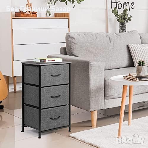 Нов Стабилен Органайзер Нощно шкафче с 3 Чекмеджета, Винтидж Дизайн - Сив