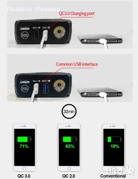 Устройството може да се използва и като допълнителна батерия с голям капацитет, с помощта на която да зареждате Вашия смартфон, таблет, лаптоп или друго дигитално устройство.