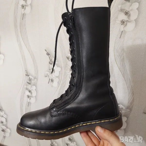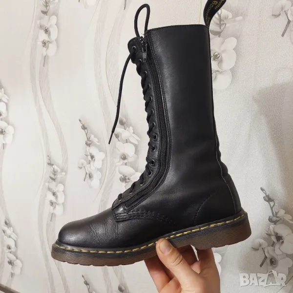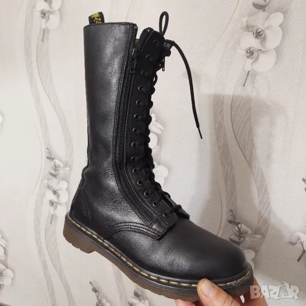 Д-Р МАРТЕНС 3733 Дамски кожени ботуши с 14 капси и цип до средата на прасеца -
