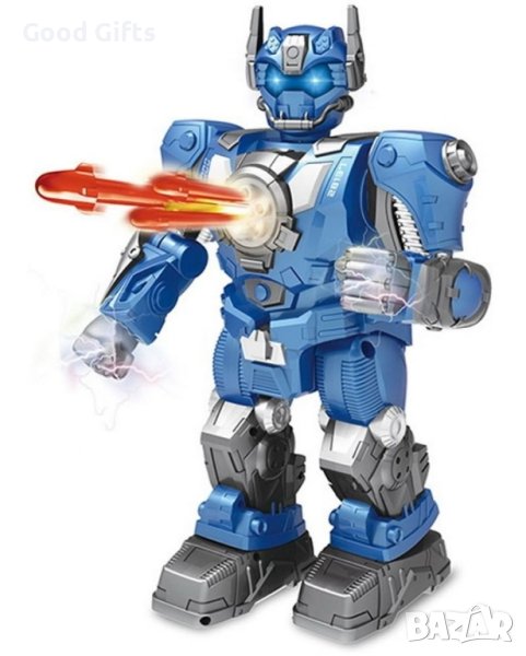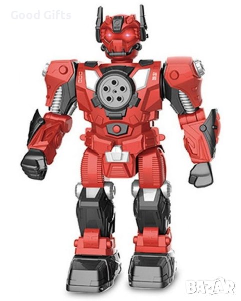 Този специален робот с инфраред контрол и светлини ще впечатли всяко момченце. Той изстрелва снаряди и движи ръцете си. Може да прави завой на дясно, завой наляво, да върви напред и назад, странично напред и странично назад. Функциите, които изпълнява са да пее, да стреля, да танцува, да спира и има демо бутон, в които вашето детенце ще се влюби. Размерът му е 32 cm и е подходящ за деца над 3 - годишна възраст.