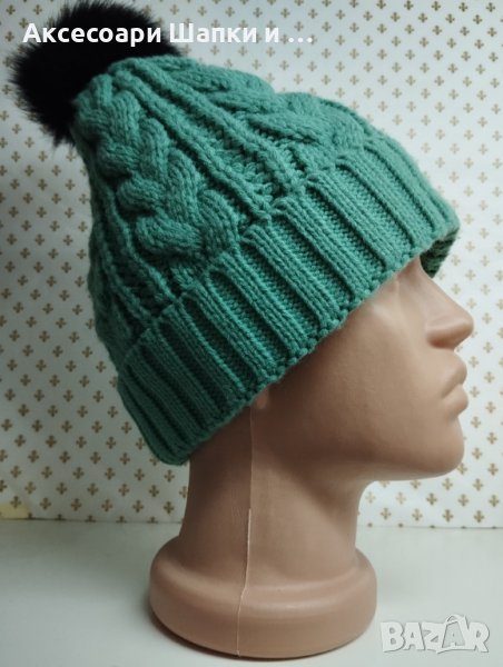 Дамска плетена шапка с естествен косъм лукс- мпш39 → Обява 43302159
