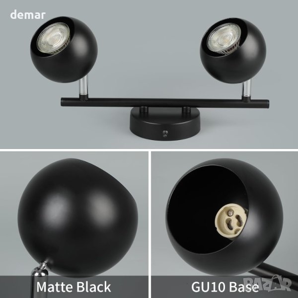глобус осигурява фокусирана светлина и е съвместима с крушки GU10. Прожекторът е въртящ се и регулируем (350° завъртане, 90° вертикално), което го прави идеален за осветление на кухня и всекидневна. Лесен за инсталиране като стенна или таванна лампа, това осветително тяло е универсално и идеално за различни вътрешни пространства като всекидневна, спалня, кухня и др. Подобрете интериора си с този стилен и функционален прожектор (Крушките не са включени, AC: 220-240V).