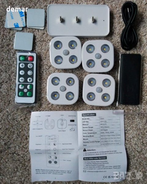 LADYSONS Вътрешни лампи със сензор за движение, безжични LED, 4 броя