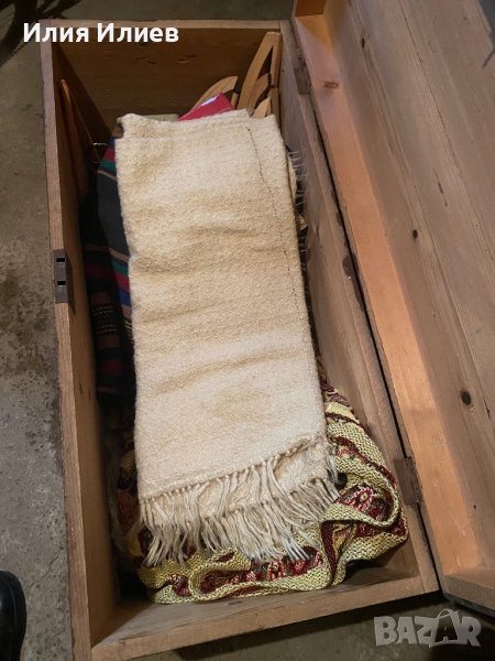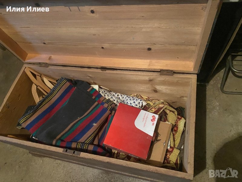 Едновремешен сандък 100/50/50 - за интериор - 20€. Общо, заедно със съдържанието му (черга битова, съдове разни и тъкани от едно време).