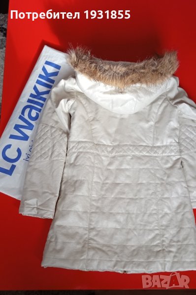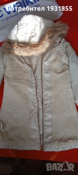 Бяло кожено яке с лек перлен ефект топла пухкава подплата