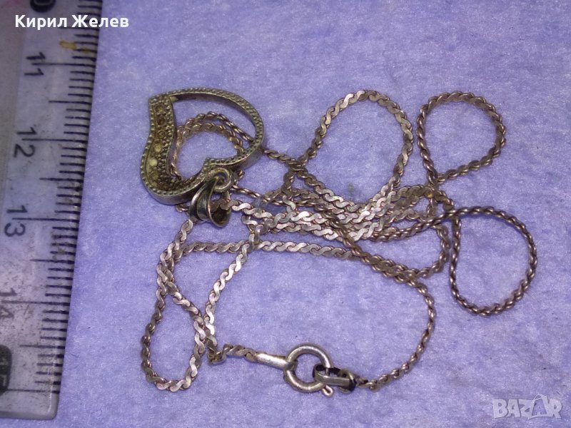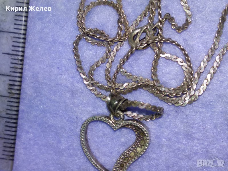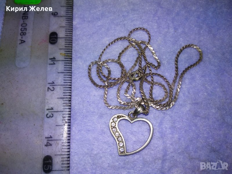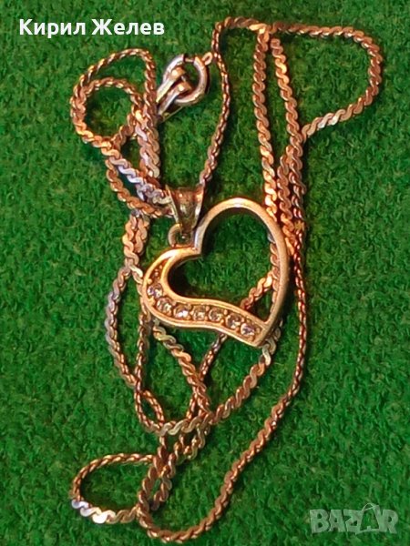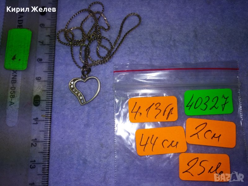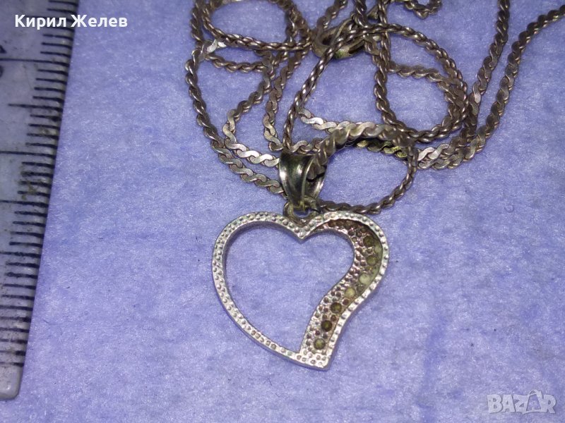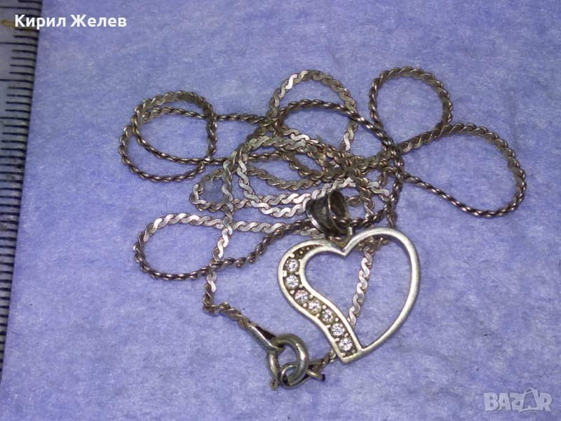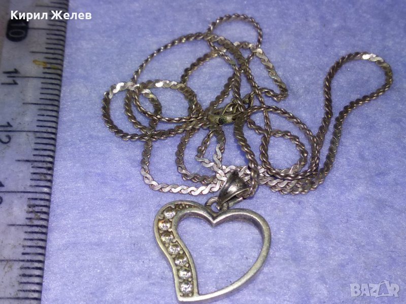 АРТ КОЛИЕ СРЕБЪРНО СЪРЧИЦЕ СРЕБРО 925 с ЦИРКОНЧЕТА и СРЕБЪРНА ВИСОКА ПРОБА СРЕБРО ФИНА ВЕРИЖКА 40327