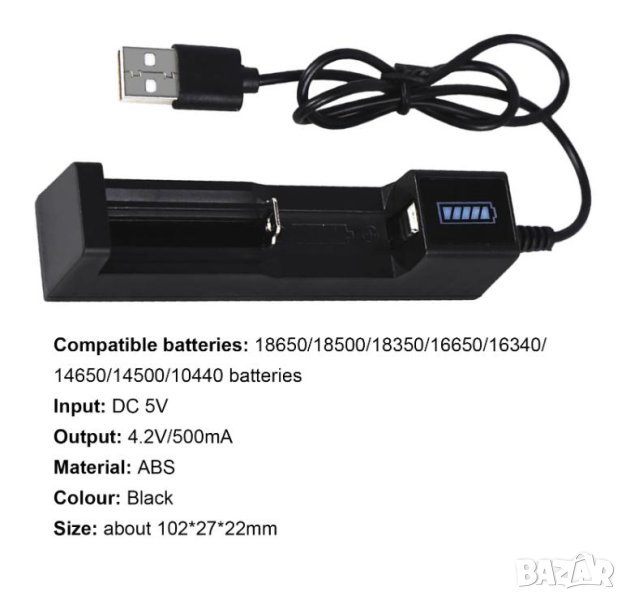 Ако желаете 5V Универсално Зарядно Устройство за 1 Батерия 18650 Батерии 18500 18350 16650 16340 14650 14500 10400 + 7.5 евро.