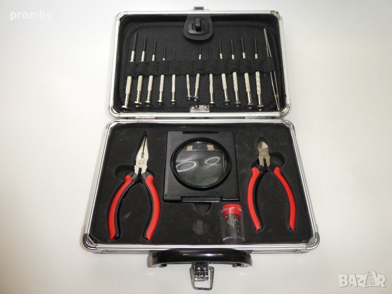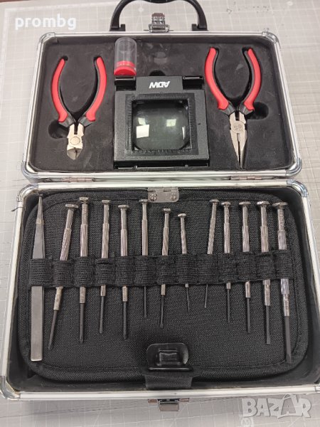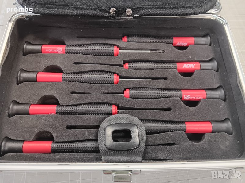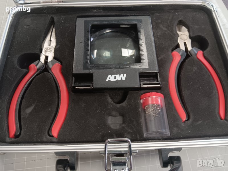 комплект инструменти в метален куфар за прецизна работа ADW-Германия. Подходящи за фини ремонти, поправка на очила, часовници, смартфони и др. ADW-Германия, в много добро състояние.