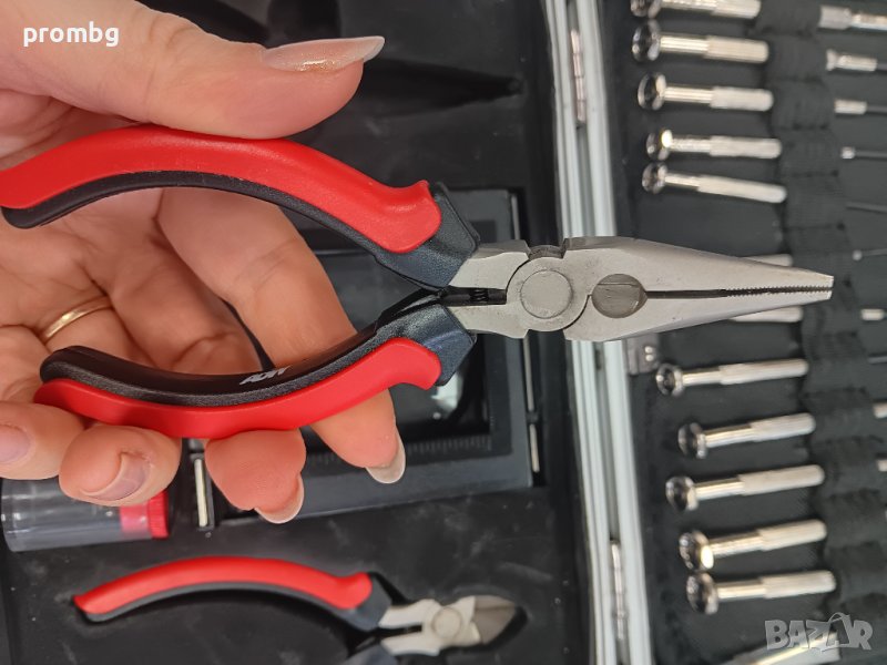 Комплектът вкл. пинсета 12 см, резачки 120 см, клещи с дълга човка 140 см. VPA GS сертифицирани, лупа със скала и стойка, диаметър 6 см, комплект, мини болтчета за очила - различни размери.