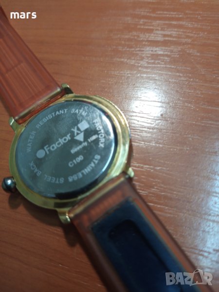часовник FACTOR X Beverly Hills, каса 37мм., 40мм. с коронката, 18мм. ширина на каишката,водоустойчивост-3 атм.,брандирана каса и катарама, без забележки визуално и функционално. Много интересен и необичаен дизайн.