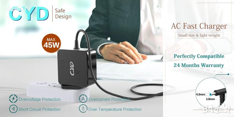 CYD 45W захранване, съвместимо за HP Spectre Charger X360