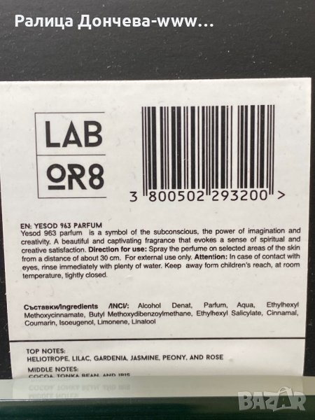 ПАРФЮМ ПРОДУКТ-LABOR8-YESOD-963, снимка 1 - Унисекс парфюми - 43311798 ПАРФЮМ ПРОДУКТ-LABOR8-YESOD-963, снимка 2 - Унисекс парфюми - 43311798 ПАРФЮМ ПРОДУКТ-LABOR8-YESOD-963, снимка 3 - Унисекс парфюми - 43311798 1/3