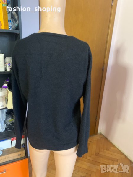 Класически черен пуловер с V-образно деколте от серията "кашмир" на бранда C&A. Изработен от най-меката, пухкава, естествена материя за студените дни-кашмир. Универсален цвят и кройка, на практика съчетаем с всичко. Мекотата му и липсата на недостатъка на вълнените тъкани-боцкнето го прави подходящ за носене и директно върху тялото.