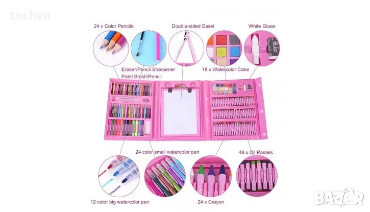 дошли в удивителния свят на творчеството с нашия детски комплект за рисуване със 208 части! Този невероятен комплект предлага на вашето дете безкрайни възможности за изразяване на своята творческа въображаемост.