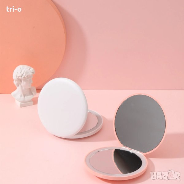 • Сгъваем дизайн: Компактното огледало има сгъваем дизайн, който го прави лесно за носене и съхранение в чантата или чантата ви за гримове.