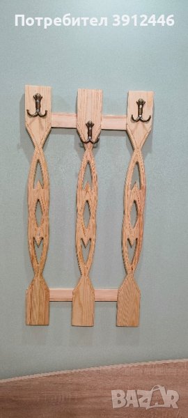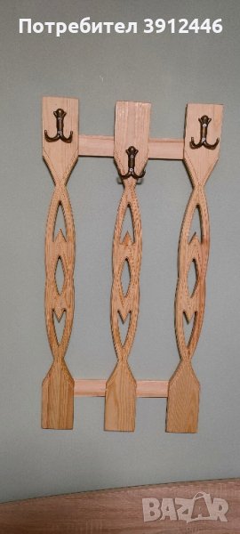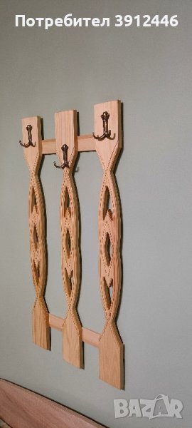 Продавам чисто нова закачалка за дрехи от естествено дърво масив бял бор (чам) Закачалката е лакирана с безцветен лак и е предназначена както за дрехи така и за шапки чанти чадъри.