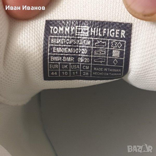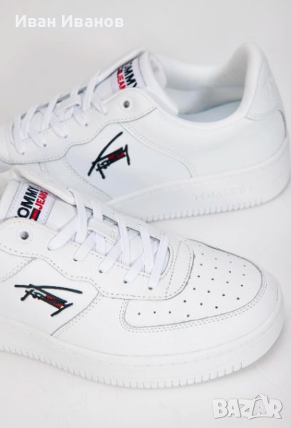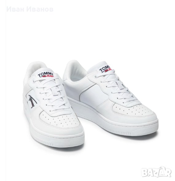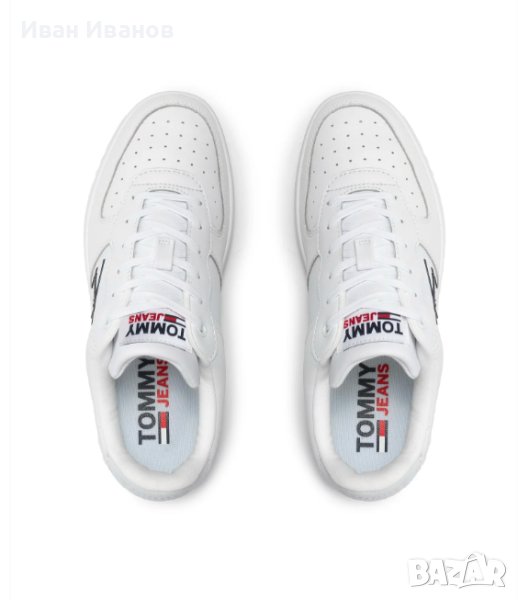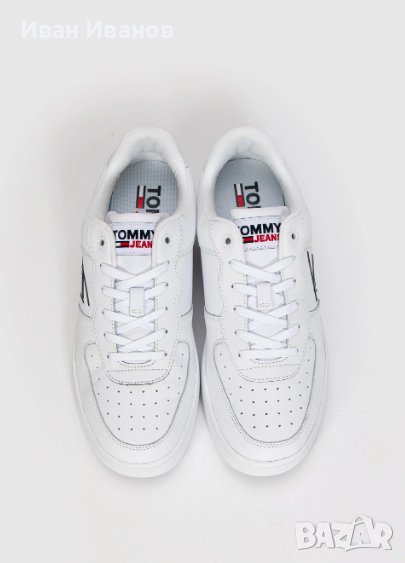 Подметка: ГумаМаратонки от Tommy Jeans с кожена горна част. Обувките са с перфорирано бомбе и лого от едната страна. На езика има платнена лепенка с лого. Вътрешната част е подплатена с текстил.