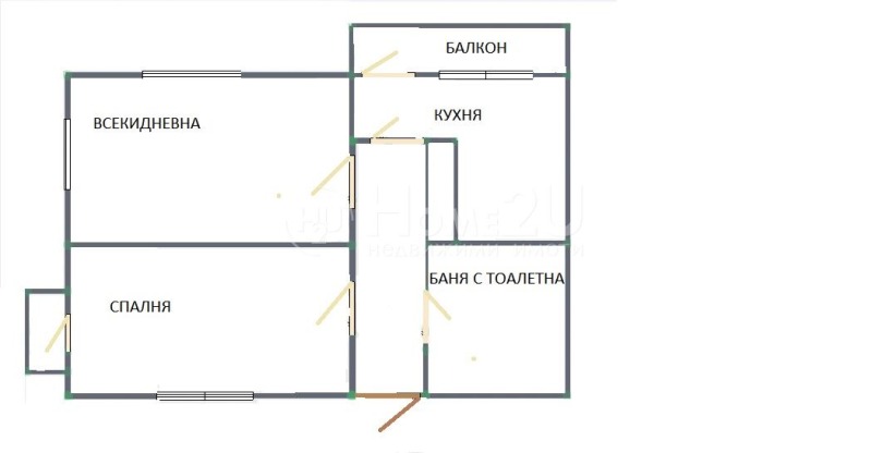 Хоум Ту Ю представя на вашето внимание първи етаж от двуетажна къща на комуникативно място, в непосредствена близост до центъра на с.Железница. Етажът разполага със следното функционално разпределение: входно антре, всекидневна, кухня с трапезария с излаз на балкон , спалня с излаз на балкон и баня с тоалетна. Към имота има прилежащо мазе с площ от 15 кв.м. Етажът разполага с равен двор от 230 кв.м. Имотът разполага с два обособени входа, отоплението е предвидено на пелети като за целта има обособено общо котелно помещение. За ваше улеснение представяме схема на разпределението на имота. За да запазите час за оглед се обадете СЕГА и цитирайте следния код:78576