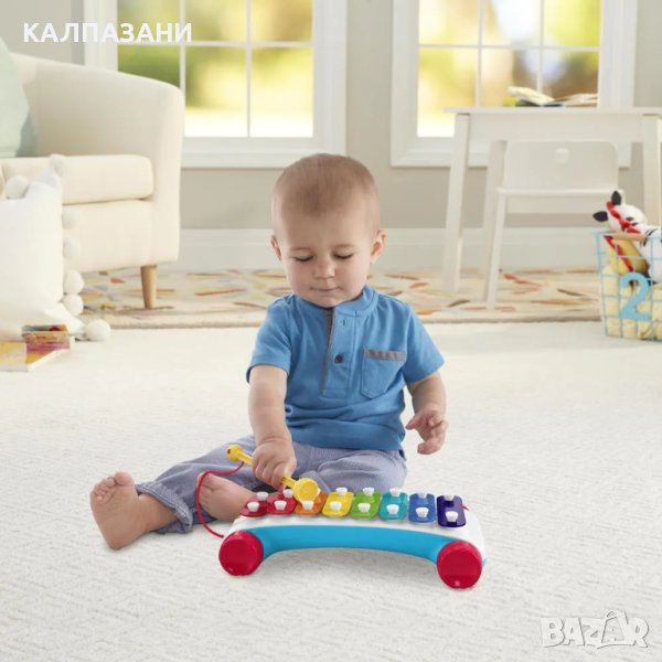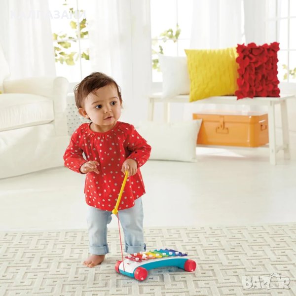 Fisher-Price® Classic Xylophone има 8 цветни клавиша за насърчаване на ранната музикална креативност. И докато техните музикални способности нарастват, децата могат да следват цветовете, за да създадат истинска мелодия! Чукчето е прикрепено, така че никога да не се губи. И е на колела, така че малките деца да могат да ходят и да дърпат своя музикален инструмент, където и да отидат!