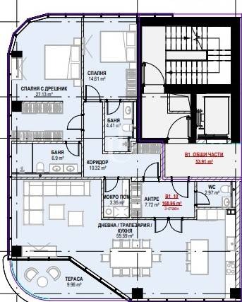 Апартаментът е с площ от 218 кв.м. и се състои от: просторна всекидневна с трапезария, санитарен възел, голяма тераса с невероятна гледка; спалня със собствен санитарен възел и дрешник, втора спалня със собствен санитарен възел, мокро помещение и просторен коридор. Цената е без включен ДДС. Ref. ID:21214