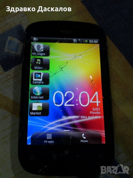 Телефонът работи,въпреки напукания тъч и поолющения заден капак.Продава се без зарядно.