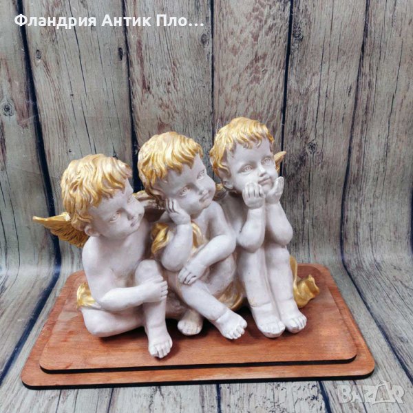 Тази статуетка представлява истинско чудо от изящество и ангелска нежност. Три ангелчета, изработени в бял цвят от полирезин, седят едно до друго, образувайки красива и хармонична композиция. Техните златни коси и криле придават на статуетката атмосфера на духовност и светлина.