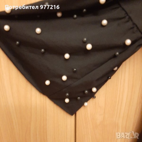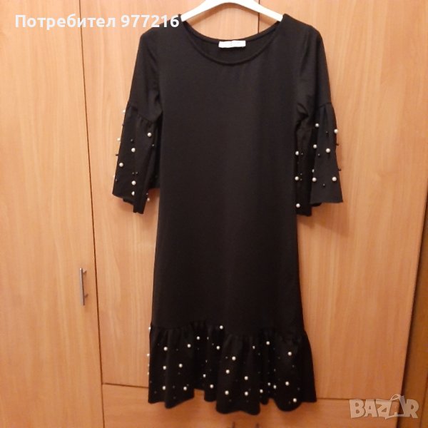 Дамска рокля с перли! Перличките са капсоловани и при пране няма опасност да паднат. Става както за ежедневието, така и за повод. Обличана е два пъти! Ръкавите са тип камбанка.