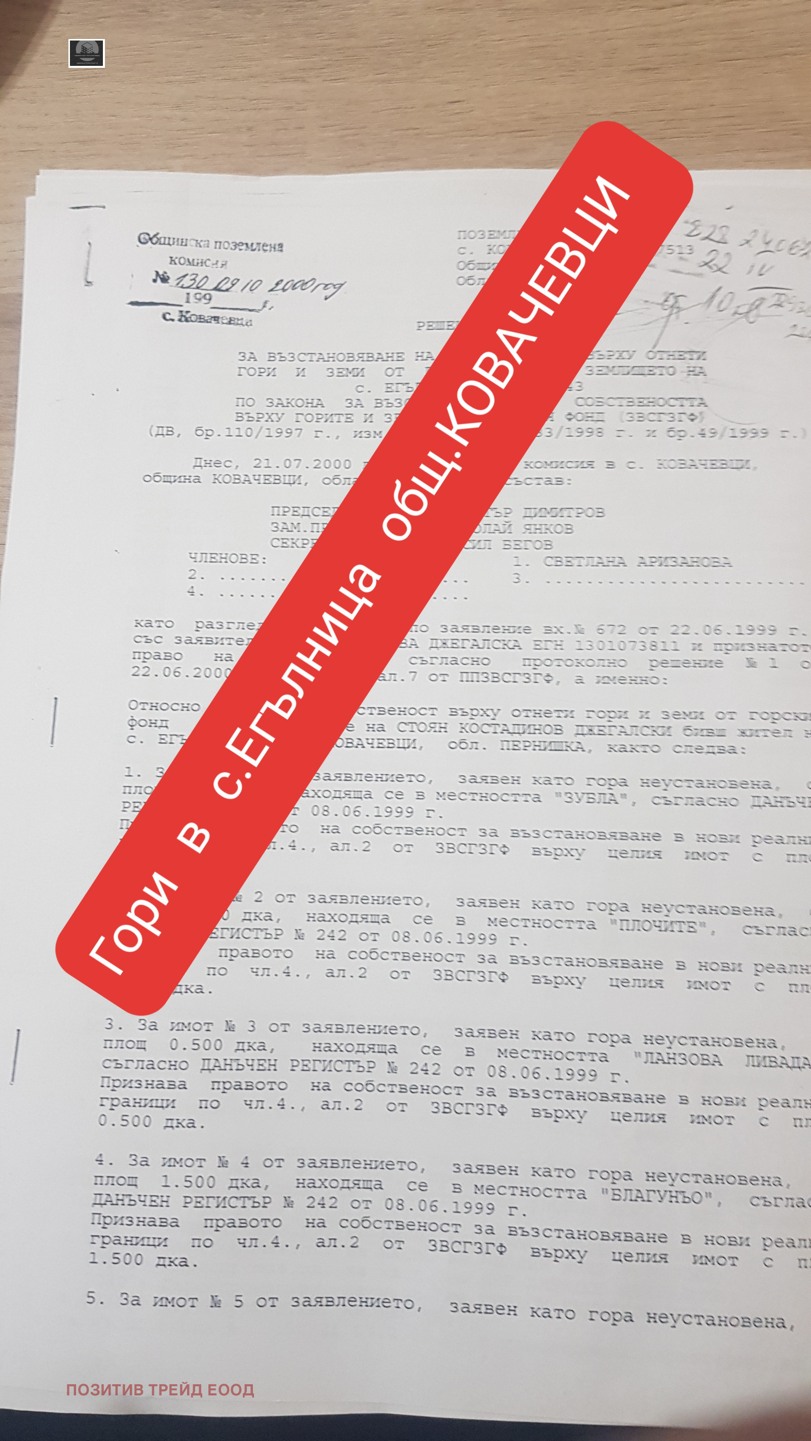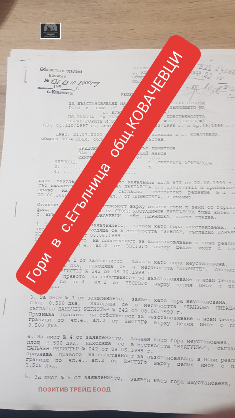 Агенция за Недвижими Имоти 'Positive Trade' продава 7дка гори в общ.Ковачевци.За повече информация 0889991841