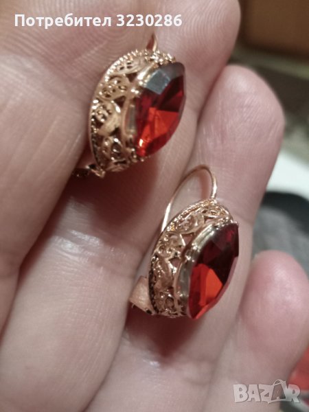 НОВИ Руски позлатени обеци с червени циркони → Обява 43334802