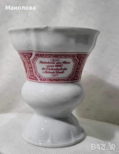 Произведени през 60-те години на миналия век, традиционен червено-бял модел на Rudesheimer. Сцени от долината на река Рейн и общността Рудесхаймер. Чинийките със съответстваща сцена в центъра, заобиколена от атрактивна флорална рамка.