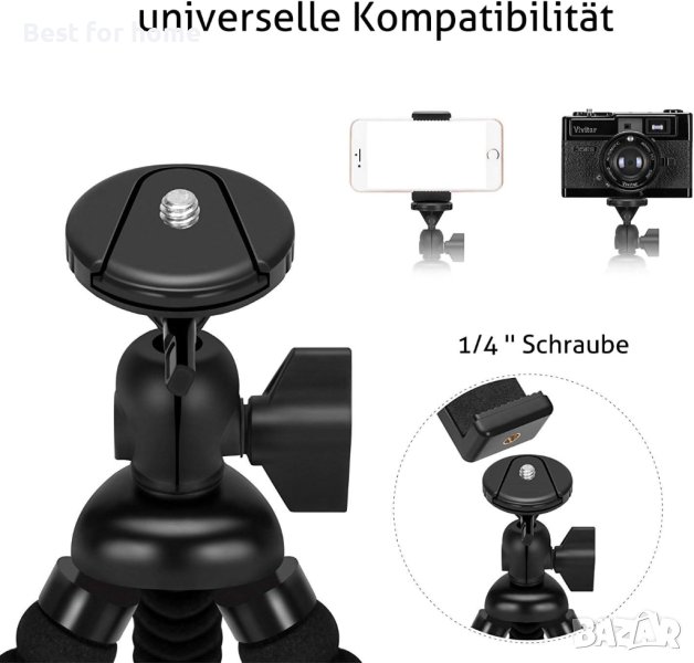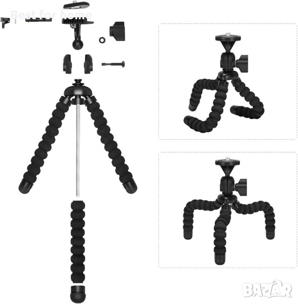 Гъвкави крака за многоъгълни снимки. Може да се огъва и завърта на 360° в перфектна форма, гъвкавата основа на триножник може да стои или да се увива около почти всяка повърхност.