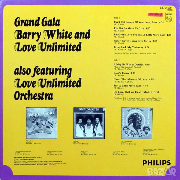 Barry White And Love Unlimited Orchestra – Grand Gala, Germany LP в отлично състояние.