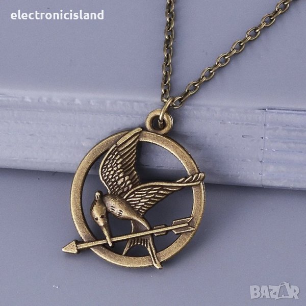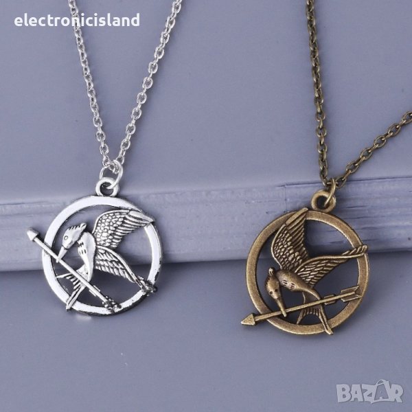 Колие от филма Игрите на глада 1 Сойка присмехулка Hunger Games Mockingjay цвят сребро и старо злато
