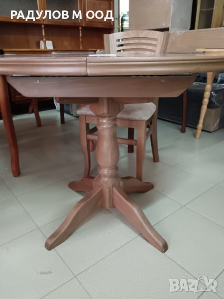 Разтегателна трапезна маса "Марион" ф100см+30см, цвят светъл орех → Обява 43337250