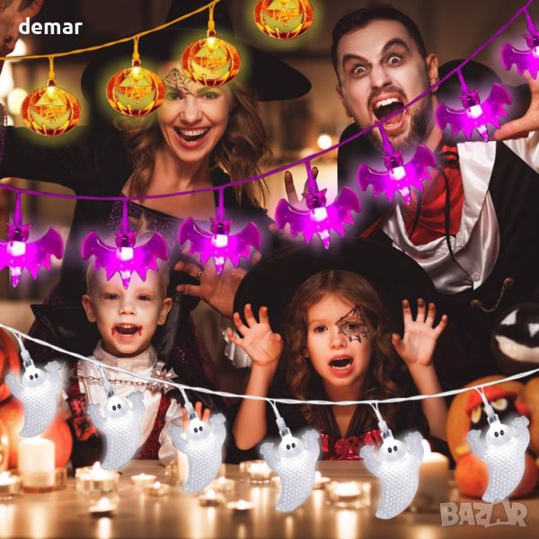 Лампи за декорация на Хелоуин, 3 опаковки светлини призрак/прилеп/тиква