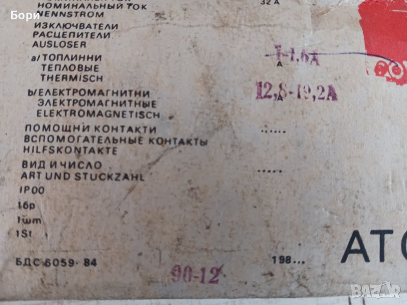 Автоматичен прекъсвач АТОО на ЕАЗ-Пловдив., снимка 1 - Други машини и части - 43341245 Автоматичен прекъсвач АТОО на ЕАЗ-Пловдив., снимка 2 - Други машини и части - 43341245 Автоматичен прекъсвач АТОО на ЕАЗ-Пловдив., снимка 3 - Други машини и части - 43341245 Автоматичен прекъсвач АТОО на ЕАЗ-Пловдив., снимка 4 - Други машини и части - 43341245 Автоматичен прекъсвач АТОО на ЕАЗ-Пловдив., снимка 5 - Други машини и части - 43341245 Автоматичен прекъсвач АТОО на ЕАЗ-Пловдив., снимка 6 - Други машини и части - 43341245 Автоматичен прекъсвач АТОО на ЕАЗ-Пловдив., снимка 7 - Други машини и части - 43341245 Автоматичен прекъсвач АТОО на ЕАЗ-Пловдив., снимка 8 - Други машини и части - 43341245 Автоматичен прекъсвач АТОО на ЕАЗ-Пловдив., снимка 9 - Други машини и части - 43341245 1/9