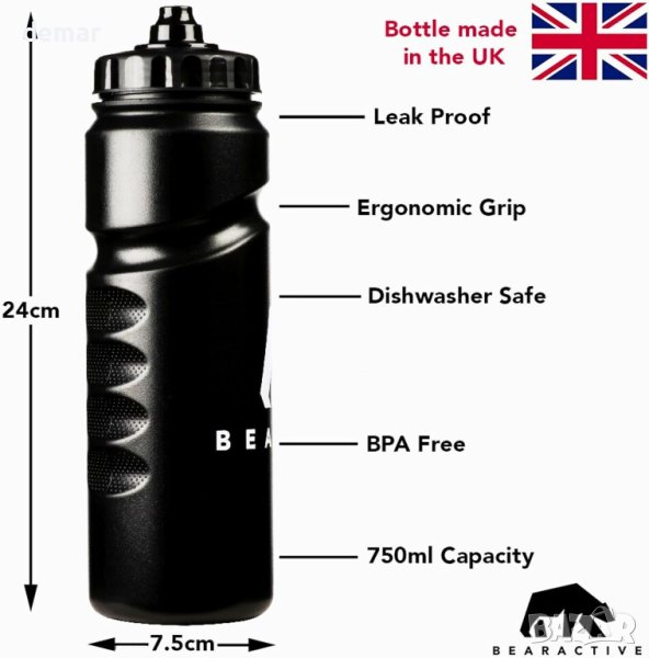 „Произведени в Обединеното кралство бутилки за вода“ са комплект от две бутилки от 750 ml, всяка с ергономичен дизайн за лесно и удобно боравене. Те могат да се мият в съдомиялна машина, като предлагат лесно почистване и удобство. Тези универсални спортни бутилки за вода пасват на повечето стандартни клетки и държачи за велосипеди, което ги прави идеален избор за велосипедисти. Освен това, техният дизайн за многократна употреба и притискане допринася за екологичната устойчивост чрез намаляване на употребата на пластмасови бутилки за еднократна употреба. Бутилките разполагат с механизъм за бърза хидратация, позволяващ лесно изстискване, без да е необходимо да се отварят или затварят, идеални за фитнес, бягане, футбол, ръгби и колоездене. Този комплект от 2 опаковки осигурява издръжливи и леки бутилки без бисфенол-А, поддържащи различни спортни приключения за вас и вашия партньор.