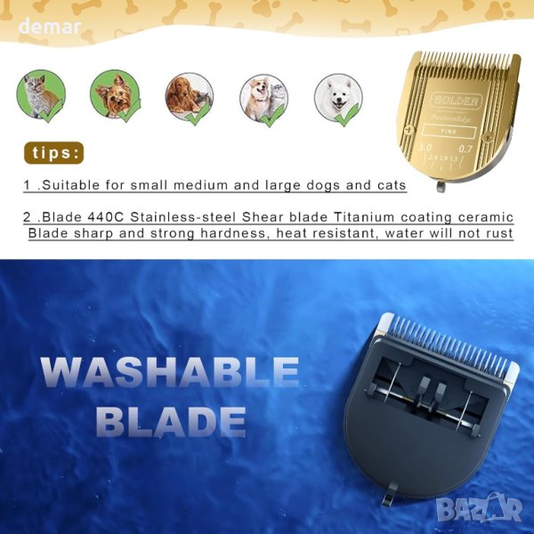 Регулируемо в пет размера—Това резервно острие за машинка за подстригване на домашни любимци е лесно за регулиране и е съвместимо с #9, #10, #15, #30 и #40 размери професионални машинки за подстригване на животни Wahl. Резервните остриета са подходящи за подстригване на косми на кучета, котки, коне и др.