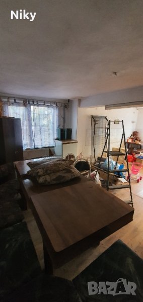 Заменя се голяма едноетажна къща в квартал Бряг за имот в Търговище апартамент, къща, магазин, склад, земеделска земя и др. Къщата е на плоча има възможност и за втори етаж строена преди 30 години и не е живяно в нея има нужда от освежаване, но като цяло е в добро състояние 109 кв.м има и гараж 40 кв.м. селскостопански постройки много плодни дървета и храсти разполага и с два подземни кладенеца !!!