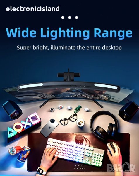 - USB порт, не са необходими инструменти, просто свържете светлиният бар към монитора на вашия компютър или друго устройство. Може лесно да се монтира за няколко секунди..