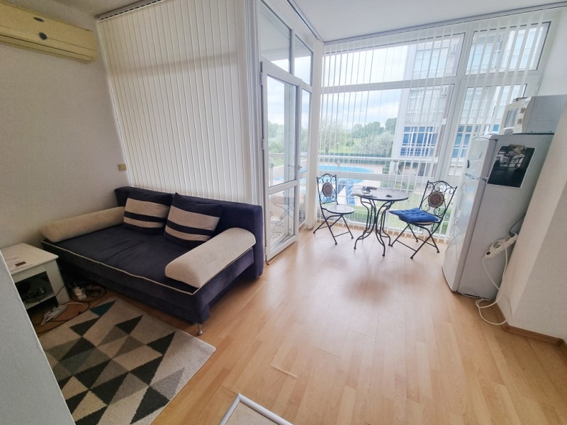 БУТИКОВ КОМПЛЕКС!!! Уважаеми клиенти, предлагаме за продажба изгоден двустаен апартамент само на 500 м от плажа. Комплексът се намира в западната част на Слънчев бряг, на около 1.5 км от старият град на Несебър. Районът, в който се намира комплексът е с много добра инфраструктура и комуникации. На пешеходно разстояние има целогодишно работещ супермаркет, магазини, аптека, заведения, пунктове за обмяна на валута, автобусна спирка. Плажът е на около 500 метра. Апартаментът, се продава напълно обзаведен и оборудван. Състои се от коридор, всекидневна с кухненски бокс, спалня, баня с тоалетна и хубав балкон с гледка към басейна и още един на спалнята. Жилището е удобно, както за семейна почивка така и за отдаване под наем. Инфраструктура и удобства в комплекса: във близост има ресторант; открит басейн, детски басейн; асансьор; детски кът; паркинг.
