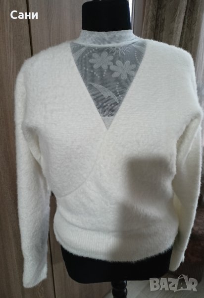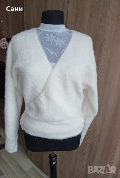Бяла мека пухена блуза прегърни ме .Размер Л,ХЛ