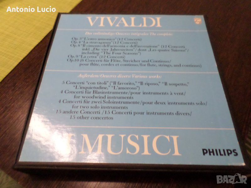 Made in Holland 1963 . Philips -6599 125 . 18 LP +box + 18pages booklet .Box has blue back cover and copyright year is mentioned on labels. Първо холандско издание . Липсва в Дискогс. Състояние на кутията- много добро. Състояние на плочите -near mint. Почистени с ултразвукова машина и прослушани за дефекти. Отлично колекционерско състояние. Един от първите важни записи на Вивалди и тези на Societa Corelli , без модернизми и академични проучвания. За повече информация оставам на разположение. Само лично предаване. Цени в Дискогс за по-късното издание от 1974 - от 45 до 350 евро. Окончателна цена.
