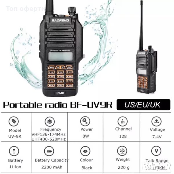 Най-новия модел преносима радиостанция Baofeng uV-9R със съвременен дизайн и перфектно качество на звука.