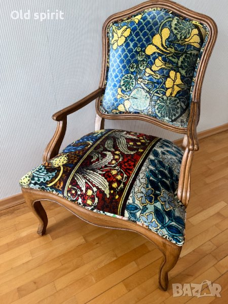 Решението за преобличането на креслата с плат „пачуърк“ бе смело и нетрадиционно, но стилът „Бохо“ го наложи.