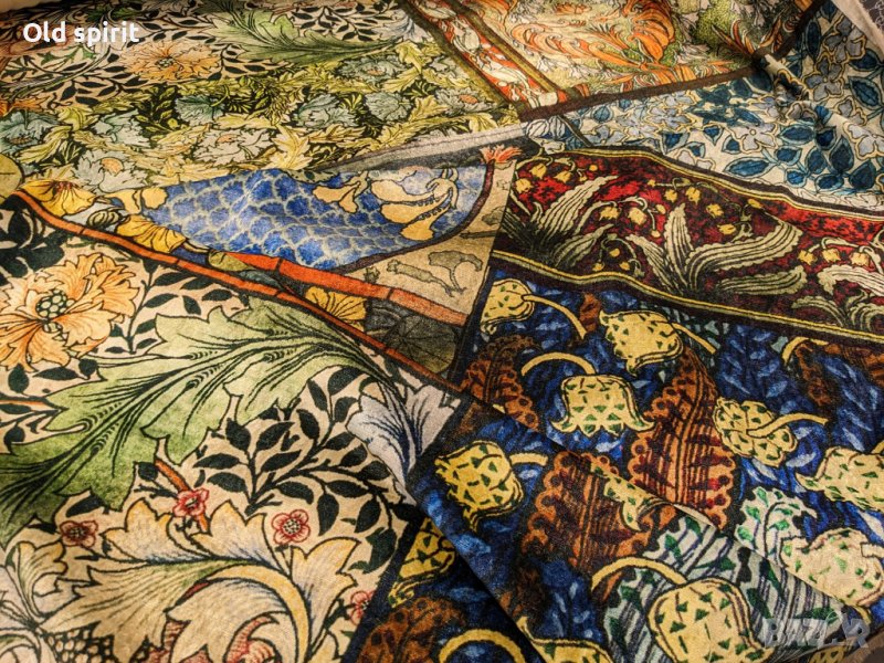 различни части от текстила, които живописно се допълват, поради постигнатата невероятна хармония в разгръщането на цветовете. Използвани са различни мотиви от плата за седалката, облегалката и гърба. Гърбът на облегалката е с две допълващи се визии от цялостната картина на плата. За дизайнера на текстила може да се говори много, но всъщност името му дава отговор на всичко. И той е Enzo degli Angiuoni.