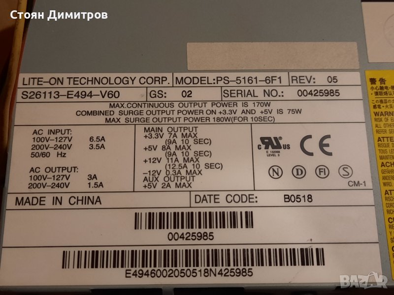 Продавам ATX захранвания от компютри Fujitsu Siemens.