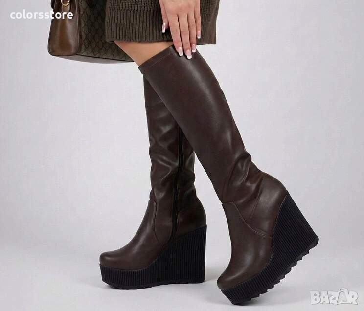 Ботуши на платформа - тъмнокафява кожа - BNP300 , снимка 1 - Дамски ботуши - 43358139 1/1