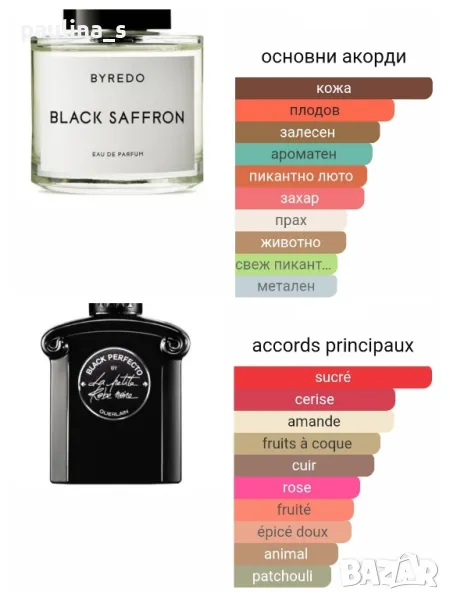 6️⃣. Колаж / "Fruit de la creativite" Les signes de Gres / 100ml EDP. Цената е крайна, без пазарлъци 60 евро. Унисекс парфюм с доказано качество, много рядка находка, с подобаваща трайност и сияж при мен, част от личната ми колекция. Наподобява на Black Safran by Byerdo и Black perfecto by la Petite robe noire / Guerlain. Сафран на Байердо и Блек перфето на Герлен, Ако се намери. Информацията и ароматната пирамида са от Фрагрантика.