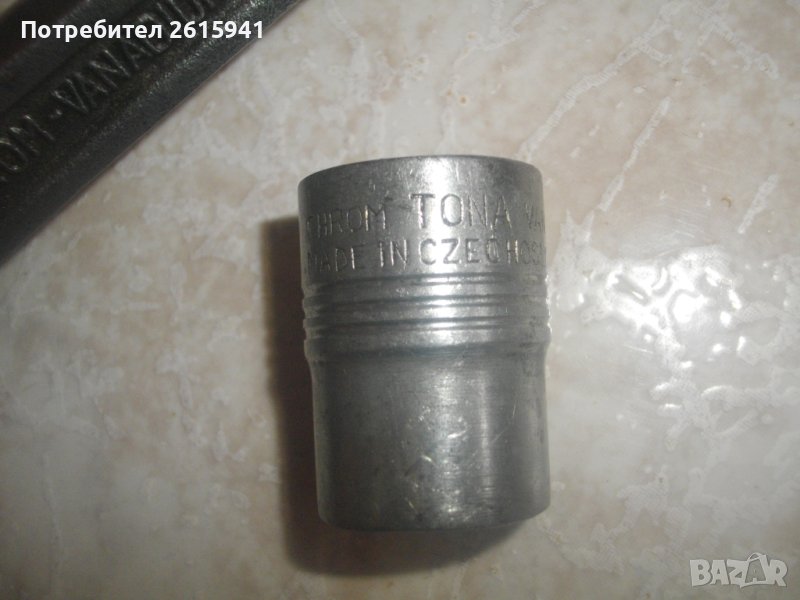 Цена на ползвана тресчотка старо качество TONA - Made in Czechoslovakia - Chrom - Vanadium - отлично състояние - дължина 250 мм - захват 1/2 - с поставен оригинален TONA камък вложка Czechoslovakia размер 18 мм - 119 лв. Камъка и тресчотката са оригинални от старото качество на марката. Професионални. Дръжка на тресчотката - старото качество пластмаса.